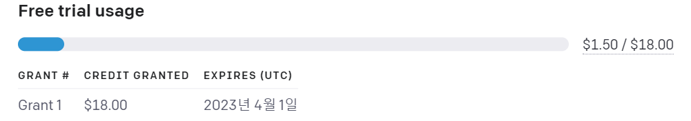 - 하지만 Free trial은 만료기간이 있으므로 기간이 종료된다면 결제를 하거나 다른 계정을 사용하셔야 합니다.