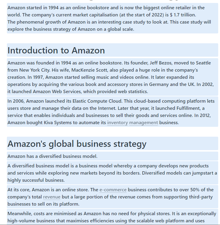 예시로 아마존의 경영 전략에 대한 보고서를 쓴다고 가정하고 설명을 진행하도록 하겠습니다.
